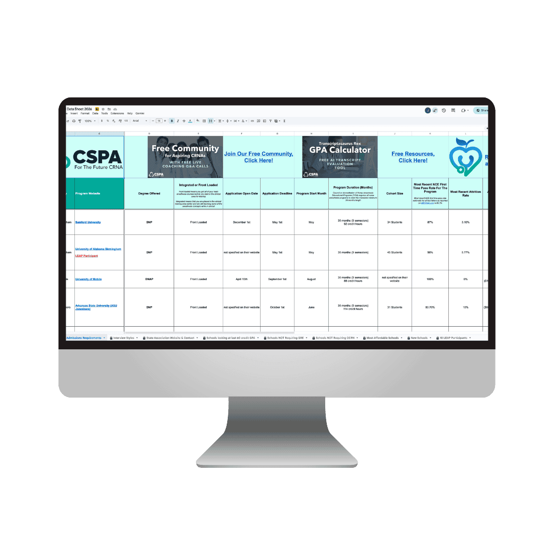 Fully utilized CRNA Prep Academy (mock interviews, Q&A sessions, printables, 5-day prep)